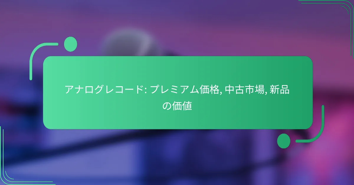 アナログレコードは、プレミアム価格がつくことがあり、特定のレコードは希少性やアーティストの人気によって高値で取引されます。中古市場では、レコードの状態や需要が価格に大きく影響し、新品の価値は市場の需給バランスや製品の品質によって決まります。 アナログレコードのプレミアム価格とは何か? アナログレコードのプレミアム価格は、特定のレコードが市場で高値で取引されることを指します。これには、希少性やアーティストの人気、状態などが影響します。 プレミアム価格の定義と基準 プレミアム価格とは、通常の市場価格を大きく上回る価格設定のことです。これには、レコードの希少性、アーティストの知名度、コレクターの需要が関与します。 一般的に、プレミアム価格は数千円から数万円、あるいはそれ以上になることがあります。特に初回プレスや限定版は高値がつく傾向があります。 プレミアム価格に影響を与える要因 プレミアム価格に影響を与える要因には、レコードの状態、アーティストの人気、発行年、そして市場のトレンドがあります。特に、未使用の状態やオリジナル盤は高値で取引されることが多いです。 また、特定のジャンルやアーティストに対する熱心なファン層が存在する場合、そのレコードの価値が上がることがあります。 人気アーティストのレコードの価格動向 人気アーティストのレコードは、時代とともに価格が変動します。例えば、ビートルズやローリング・ストーンズのレコードは、常に高い需要があります。 最近では、若い世代の間でもアナログレコードの人気が高まっており、これが価格の上昇を促進しています。 市場における希少性の役割 希少性はアナログレコードのプレミアム価格において重要な要素です。限られた枚数しか製造されていないレコードは、コレクターの間で高値がつくことが多いです。 例えば、特定のライブ盤や限定版は、一般流通しているレコードよりも遥かに高い価格で取引されることがあります。 プレミアム価格の事例 … アナログレコード: プレミアム価格, 中古市場, 新品の価値Read more