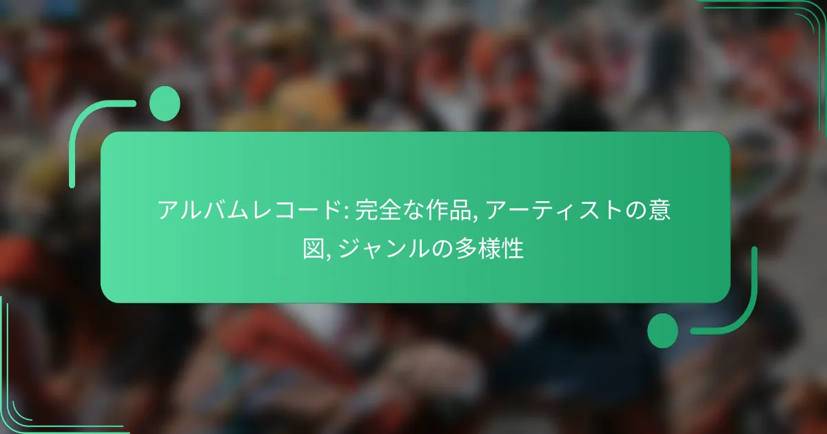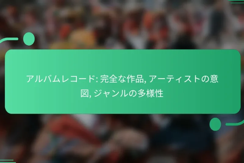 アルバムレコードは、アーティストが特定のテーマやストーリーを表現するために制作した音楽作品の集合体であり、音楽ジャンルやアーティストの意図を反映しています。多様なジャンルが含まれ、各スタイルは独自の特徴を持ち、アーティストの文化的背景をも映し出しています。 アルバムレコードとは何か? アルバムレコードは、アーティストが特定のテーマやストーリーを表現するために制作した音楽作品の集合体です。通常、数曲から成り立ち、音楽ジャンルやアーティストの意図を反映しています。 アルバムレコードの定義と歴史 アルバムレコードは、音楽の形式として20世紀初頭に登場しました。最初は78回転のレコードとして販売され、その後、LP(ロングプレイ)レコードが普及しました。 1970年代から1980年代にかけて、アルバムはアーティストの創造的表現の重要な手段となり、コンセプトアルバムやストーリー性のある作品が増えました。 アルバムレコードの構成要素 アルバムレコードは、通常、イントロ、メイントラック、エンディングなどの構成要素から成り立っています。各トラックは、曲の流れやテーマを強調する役割を果たします。 また、アルバムにはアートワークやライナーノーツも含まれ、これらは聴衆に対する視覚的なメッセージを提供します。 アーティストの意図とアルバムの関係 アーティストの意図は、アルバムのテーマやトーンに大きく影響します。例えば、特定の社会問題を扱ったアルバムは、聴衆にメッセージを伝える手段となります。 アーティストは、アルバム全体を通じて一貫したストーリーを語ることが多く、これにより聴衆との深い感情的なつながりを築きます。 ジャンルの多様性とアルバムの影響 アルバムレコードは、ロック、ポップ、ジャズ、クラシックなど、さまざまな音楽ジャンルで制作されます。各ジャンルは独自のスタイルや構成を持ち、アルバムの内容に影響を与えます。 例えば、ジャズアルバムでは即興演奏が重視されることが多く、ロックアルバムではストーリー性が強調される傾向があります。 アルバムレコードの文化的意義 … アルバムレコード: 完全な作品, アーティストの意図, ジャンルの多様性Read more