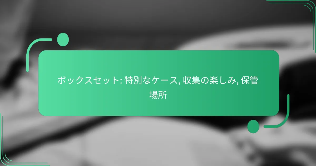 ボックスセットは、特定のテーマやシリーズに基づいて複数のアイテムをまとめた魅力的なパッケージです。特別なケースに収められたこれらのセットは、コレクターにとってアイテムを保護し、見栄えを良くする重要な役割を果たします。収集する楽しみは、限定版や特別なデザインを手に入れることでさらに高まります。 ボックスセットとは何ですか? ボックスセットは、特定のテーマやシリーズに基づいて複数のアイテムをまとめたパッケージです。通常、特別なケースに収められ、コレクターやファンにとって魅力的な商品となります。 ボックスセットの定義と特徴 ボックスセットは、音楽アルバム、映画、書籍など、関連するアイテムを一つのパッケージに収めたものです。特徴として、限定版や特別なアートワーク、特典が含まれることが多く、コレクターズアイテムとしての価値があります。 また、ボックスセットは通常、デザインや素材にこだわりがあり、見た目にも楽しめるように工夫されています。 ボックスセットの種類 ボックスセットには、音楽ボックスセット、映画ボックスセット、書籍ボックスセットなど、さまざまな種類があります。音楽では、アーティストの全アルバムを収めたセットが人気です。 映画では、特定のシリーズや監督の作品を集めたボックスセットがあり、書籍では、著者の作品集や特定のジャンルの本がまとめられたものがあります。 ボックスセットの用途 ボックスセットは、コレクションとしての楽しみだけでなく、贈り物や記念品としても利用されます。特にファンにとっては、特別なアイテムを手に入れることで、思い出をより深めることができます。 また、ボックスセットは展示用としても適しており、インテリアの一部として楽しむことができます。 ボックスセットの歴史 ボックスセットの起源は、音楽業界におけるアルバムの再リリースに遡ります。1970年代から1980年代にかけて、アーティストの人気が高まる中で、ファン向けの特別なパッケージが登場しました。 その後、映画や書籍のボックスセットも普及し、現在では多くのジャンルで見られるようになりました。 ボックスセットの人気の理由 … ボックスセット: 特別なケース, 収集の楽しみ, 保管場所Read more