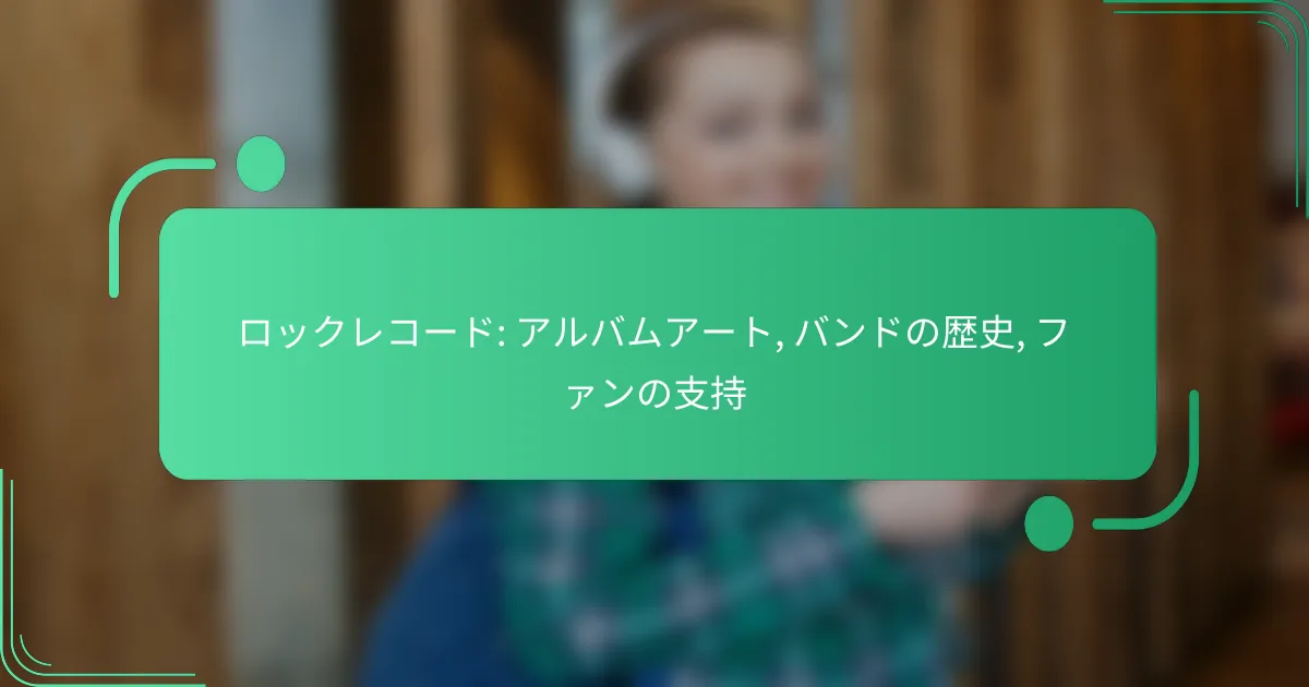 ロックレコードは、1960年代から現在にかけて広く普及している音楽アルバムで、アーティストの創造性を表現し、ファンとの結びつきを強化する重要な手段です。アルバムアートは、音楽作品の視覚的表現としてアーティストのアイデンティティやテーマを伝え、リスナーの興味を引く役割を果たします。また、バンドの歴史は、メンバーの結成や音楽スタイルの進化を通じて独自のストーリーを形成しています。 ロックレコードとは何か? ロックレコードは、ロック音楽を収録した音楽アルバムであり、1960年代から現在にかけて広く普及しています。これらのレコードは、アーティストの創造性を表現し、ファンとの強い結びつきを築く重要な手段となっています。 ロックレコードの定義と歴史的背景 ロックレコードは、ロック音楽のスタイルを持つ楽曲を収めた音楽作品です。1950年代後半から1960年代にかけて、ビートルズやローリング・ストーンズなどのバンドが登場し、ロック音楽の人気を確立しました。 この時期、レコード産業は急成長し、アナログレコードからCD、デジタル配信へと進化しました。ロックレコードは、音楽の商業的成功だけでなく、社会的な変革の象徴ともなりました。 ロックレコードの主要な特徴 ロックレコードの特徴には、エネルギッシュなリズム、強いメロディ、そしてしばしば反抗的な歌詞が含まれます。多くのアルバムは、テーマ性やストーリー性を持ち、聴衆に深い印象を与えます。 また、アートワークも重要な要素であり、アルバムカバーはアーティストのアイデンティティを表現する手段として機能します。視覚的な要素は、音楽と同様にファンの心をつかむ役割を果たします。 ロックレコードの文化的影響 ロックレコードは、音楽だけでなく、ファッションやライフスタイルにも大きな影響を与えました。特に1960年代から1970年代にかけて、ロックは反体制の象徴となり、若者文化の中心に位置しました。 この影響は、音楽フェスティバルやコンサートの形で現在も続いており、ロックレコードは世代を超えたコミュニティを形成する要素となっています。 ロックレコードのジャンル分類 ロックレコードは、さまざまなサブジャンルに分類されます。代表的なものには、ハードロック、パンクロック、オルタナティブロック、メタルなどがあります。 各ジャンルは独自のスタイルや特徴を持ち、アーティストはこれらを融合させることで新しい音楽を生み出しています。例えば、パンクロックはシンプルで速い曲調が特徴ですが、オルタナティブロックはより実験的なアプローチを取ることが多いです。 ロックレコードの代表的アーティスト … ロックレコード: アルバムアート, バンドの歴史, ファンの支持Read more