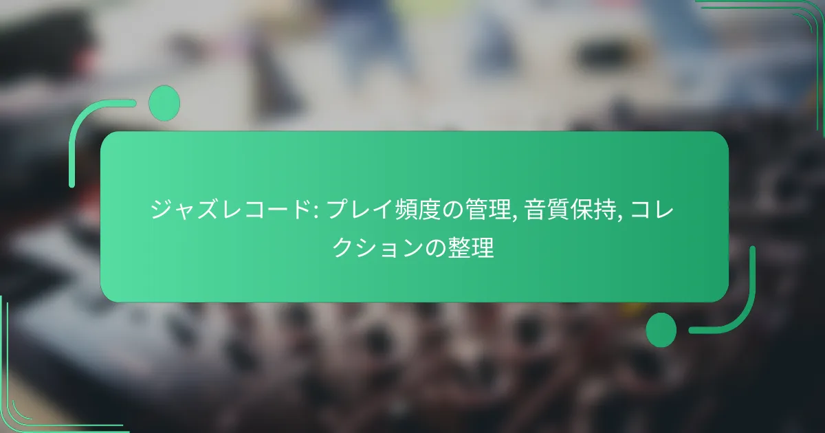 ジャズレコードのプレイ頻度を管理することは、音質を保ち、コレクションを楽しむために不可欠です。適切な保管方法やクリーニング技術を用いることで、レコードの劣化を防ぎ、長期間にわたって高品質な音を楽しむことができます。また、コレクションを整理する際には明確な基準を設けることで、管理が容易になり、全体の価値を高めることができます。 ジャズレコードのプレイ頻度をどう管理するか? ジャズレコードのプレイ頻度を管理することは、音質を保ち、コレクションを楽しむために重要です。適切な頻度で再生することで、レコードの劣化を防ぎ、長期間にわたって良好な音質を維持できます。 プレイ頻度の重要性と影響 プレイ頻度は、レコードの寿命や音質に直接影響します。頻繁に再生すると、針やレコードの摩耗が進み、音質が劣化する可能性があります。 逆に、長期間再生しないと、埃やカビが発生しやすくなり、音質が損なわれることもあります。適切な頻度を保つことが重要です。 適切なプレイ頻度の基準 一般的には、ジャズレコードは数週間に一度の再生が推奨されます。これにより、音質を保ちながら、レコードの劣化を防ぐことができます。 特にお気に入りのアルバムは、月に1回程度の再生が理想的です。これにより、音質を楽しみつつ、レコードの状態を維持できます。 プレイ頻度を管理するためのツール プレイ頻度を管理するためには、アプリやスプレッドシートを利用するのが効果的です。これにより、どのレコードをいつ再生したかを簡単に記録できます。 また、音楽ストリーミングサービスのプレイリスト機能を活用することで、再生履歴を確認しやすくなります。これにより、再生のバランスを保つことができます。 プレイ頻度の記録方法 プレイ頻度を記録するには、簡単なメモを取る方法が有効です。レコードごとに再生日を記入したノートを作成すると良いでしょう。 また、デジタルツールを使うことで、再生履歴を自動的に記録することも可能です。これにより、手間を省きつつ正確なデータを保持できます。 プレイ頻度の調整方法 … ジャズレコード: プレイ頻度の管理, 音質保持, コレクションの整理Read more
