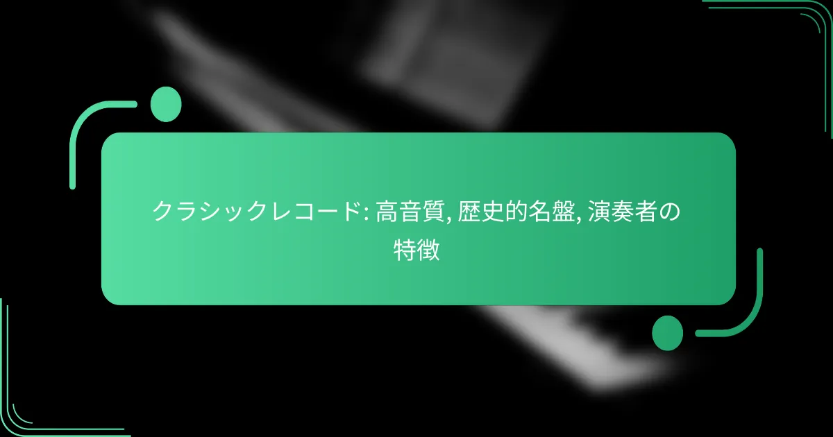 クラシックレコードを購入する際は、音質、演奏者の特徴、そして歴史的名盤の価値を考慮することが重要です。これらの要素は、レコードの選択や投資価値に大きく影響します。