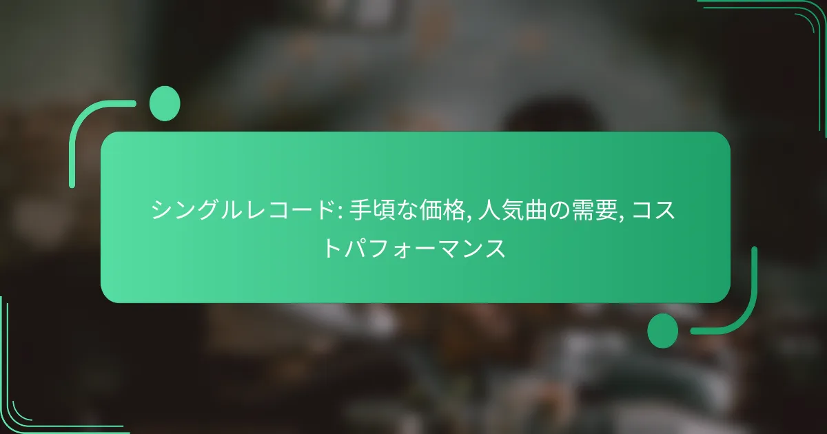 シングルレコードの人気曲を選ぶ際の基準は、手頃な価格、需要の高い曲、そしてコストパフォーマンスです。これらの要素を考慮することで、購入者は満足度の高い選択ができます。
