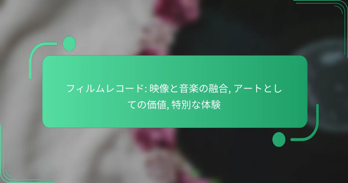 フィルムレコードは、映像と音楽を融合させた独自のアート形式であり、その価値は視覚的および聴覚的な体験を提供することにあります。これにより、観客は単なる鑑賞を超え、感情的なつながりを持つことができます。