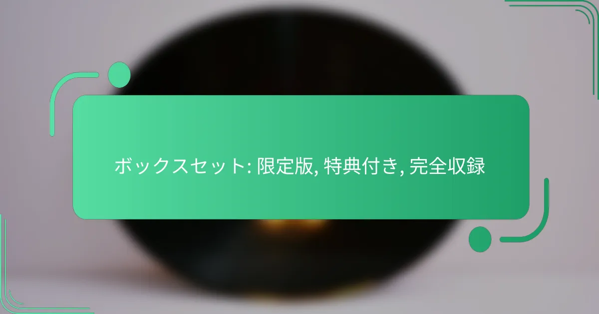 ボックスセットは、ファンにとって特別な体験を提供します。限定版や特典付きの要素が、コレクションとしての魅力を高めています。